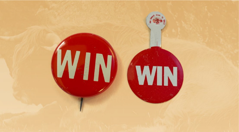 These "WIN" pins highlight past failed programs of the President Gerald Ford Administration aimed at controlling inflation.